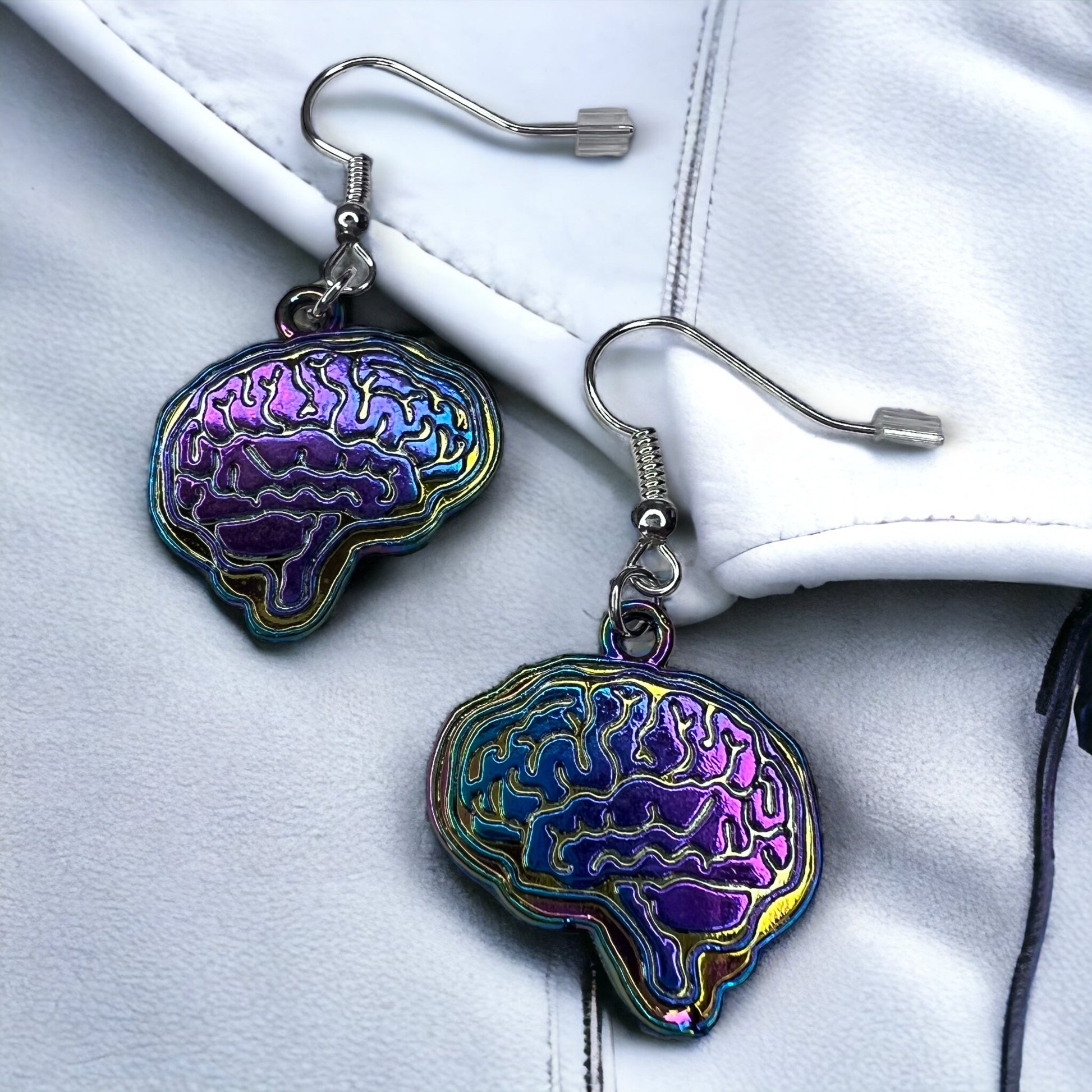 - Brain charm: stainless steel metal with iridescent coating