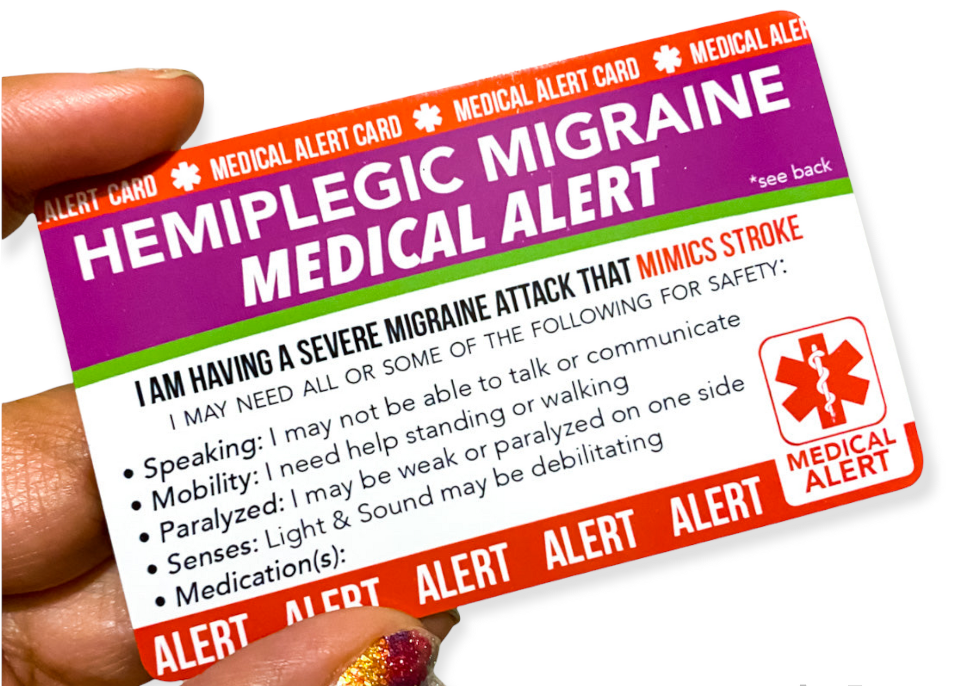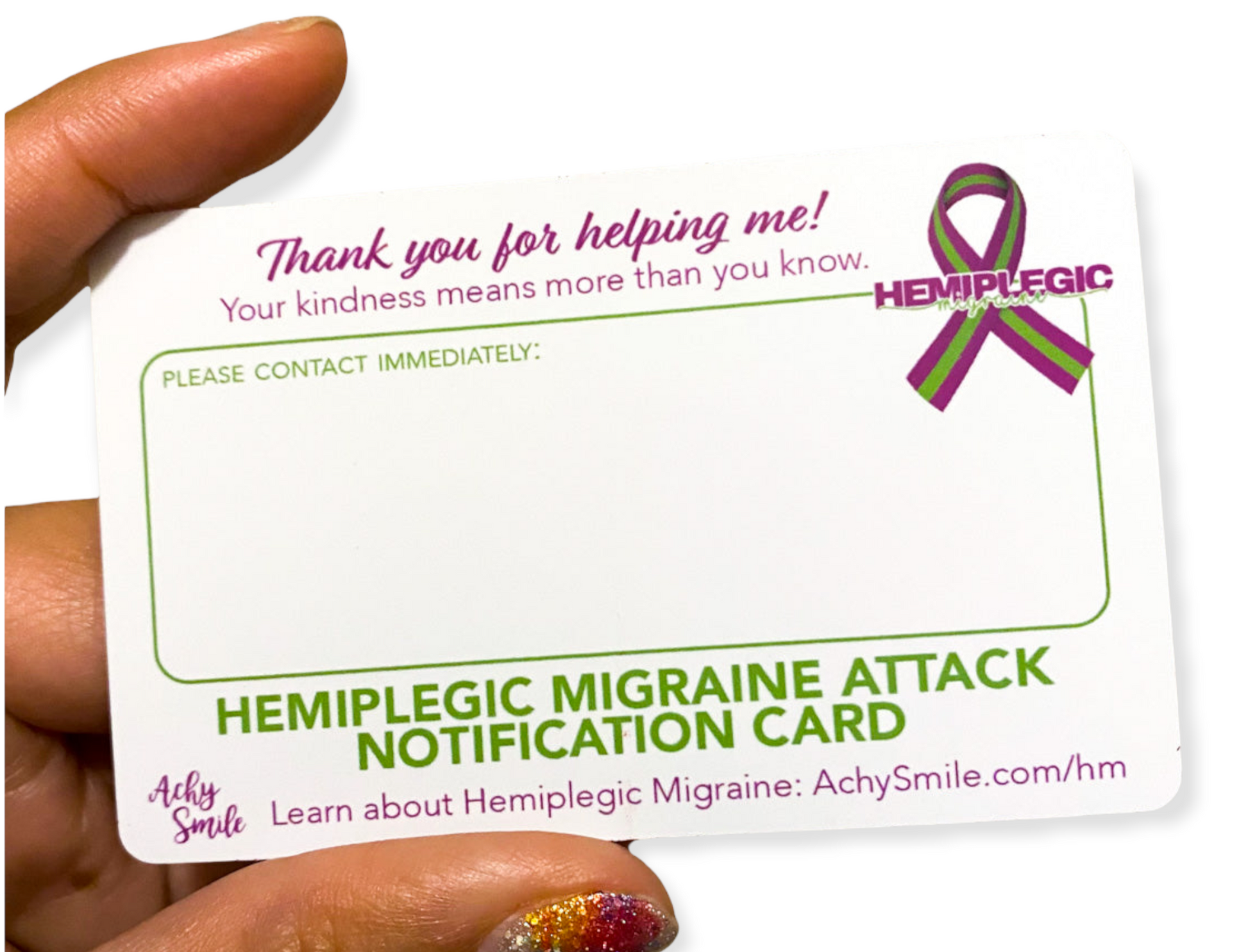 Carry this Hemiplegic Migraine Medical Alert Card with you everywhere you go in case of an attack and you cannot speak for yourself. Grab a few to keep easily accessible, like in your backpack, purse, wallet, shirt pocket, or tucked away in your Rollator. These cards are printed on smudge-proof 30 mil thick, credit card sized, PVC plastic.