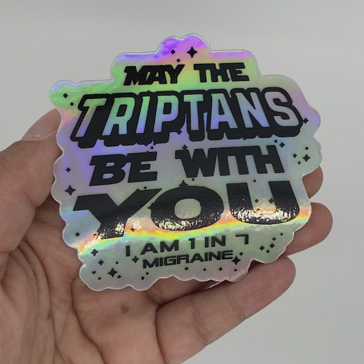 May The Triptans Be With You holographic sticker! Made of durable vinyl that resists sunlight, heat & scratches.
