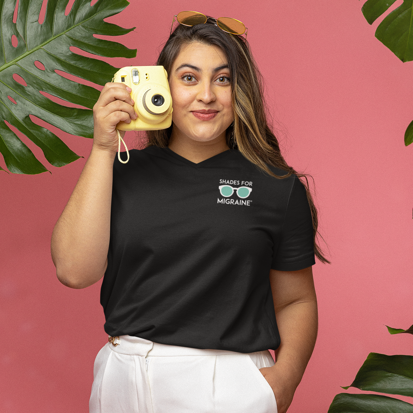 Shades for Migraine Awareness Shirt - Ladies V-Neck Tee (Chest Logo Only)
